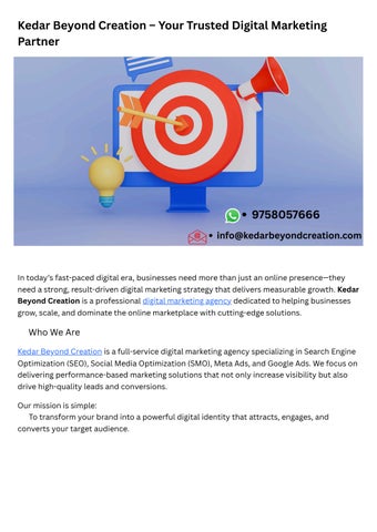 Kedar Beyond Creations offers digital marketing and website designing services in Sector 63, Noida, Uttar Pradesh. We have serviced clients for 10 years, offering tailored, cutting-edge, and brand focused solutions. For further details, please visit our website.