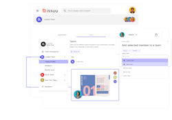 • Issuu for Teams enables easy access, management, and control over assets for groups of users so that you can own your digital distribution in a seamless workflow. Its purpose is to serve customers whose digital content requires access for several users, multiple publisher profiles to divide content by brands, clients, or regions, or involvement from key stakeholders across the organization. Whether you only have one team with several members who share assets and need to work on the same content together or multiple teams serving different markets or clients, a Teams plan can help. Issuu Premium, on the other hand, is our best plan intended for only one user, and does not offer dedicated workspaces or multiple domains.