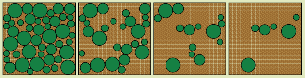 For example, the figure below shows four different representations of 5,000 square meter areas that could be described as a forest by this standard. When changes to the condition of forests within this range occur, they are not detected by this definition.