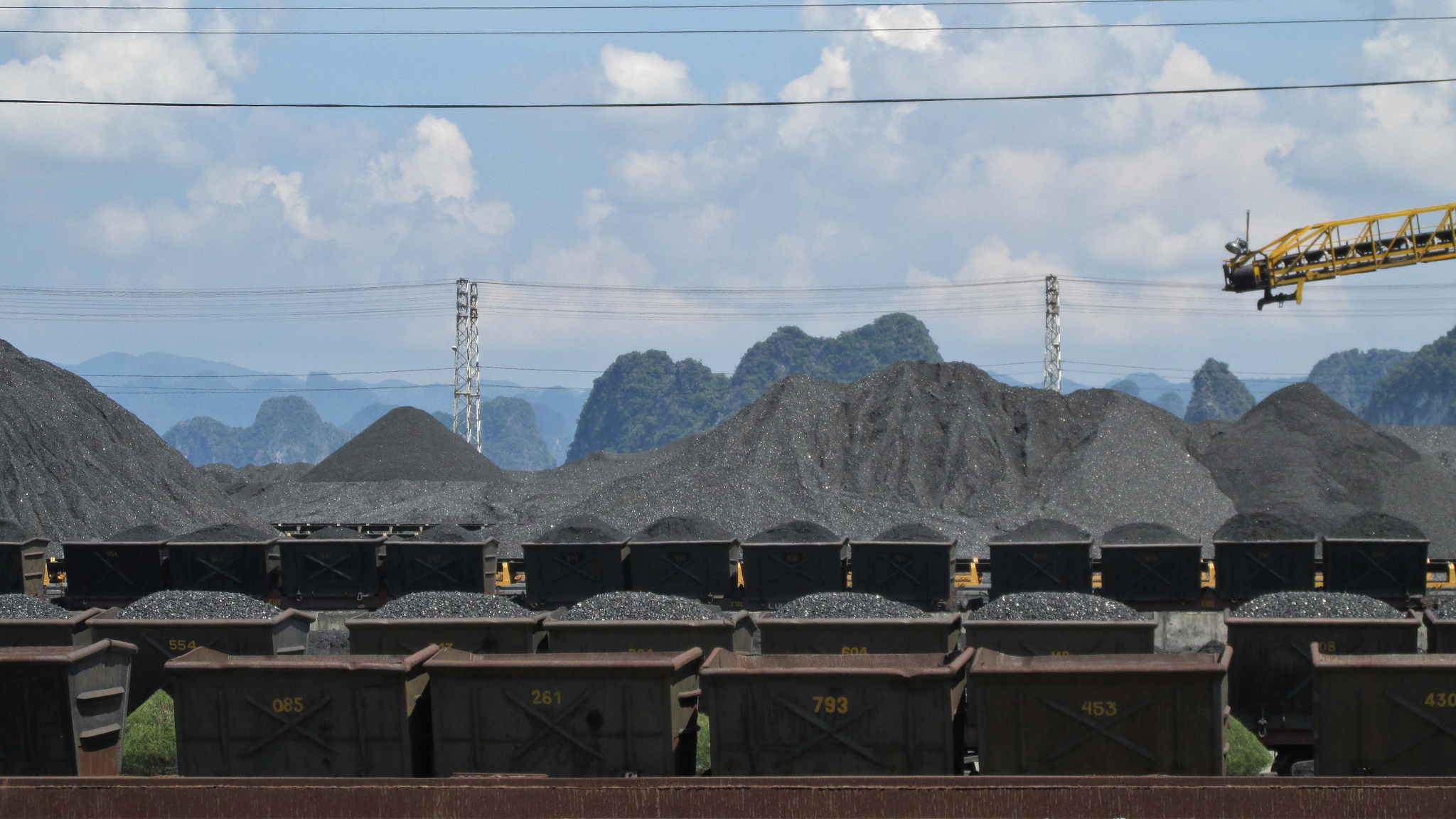 A coal railway terminal in Quang Ninh, Vietnam with Qarst limestone formations in the background. Photo by garycycles8, Flickr, 12 August 2013. Licensed under CC BY 2.0.