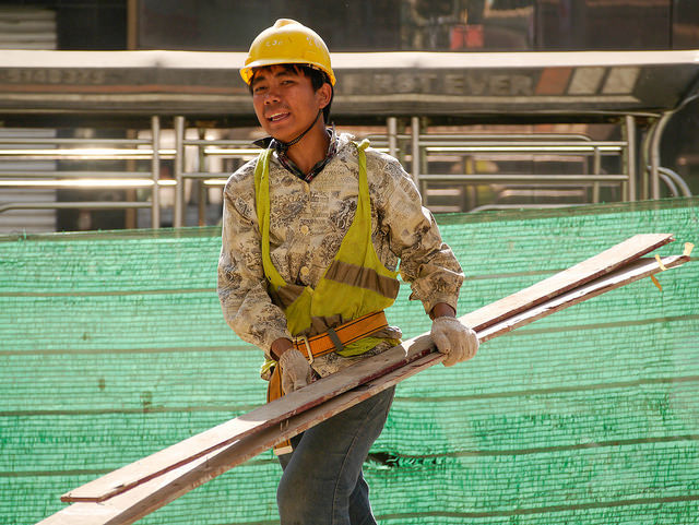 Construction workers build a section of a highway in Yangon. Because of Yangon’s status as the nation’s business hub, construction has become a major source of employment for many Yangon residents. Photo by Asian Development Bank, Flickr. Taken 5 March 2015. Licensed under CC BY-NC-ND 2.0.