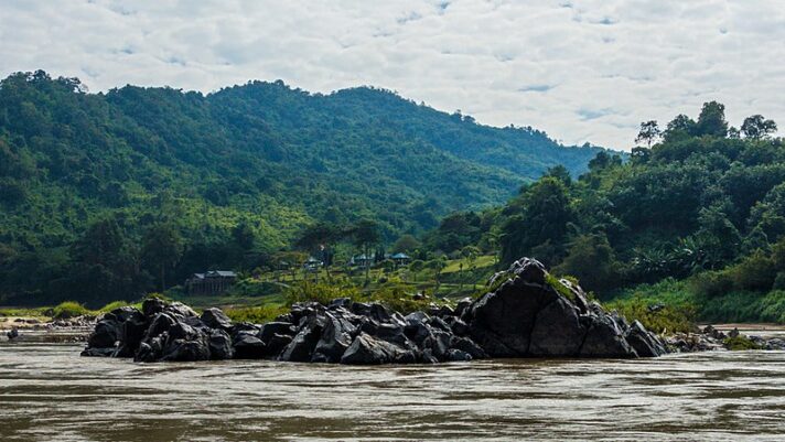 Mountainous forest as seen from the Mekong River. Photo by Klim Levine/Visions of Domino via Wikimedia. Licensed under CC BY 2.0.