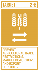 The other two SDG 2 means of implementation targets (2.B – Correct and prevent trade restrictions and distortions, and 2.C – Adopt measures to ensure the proper functioning of food commodity markets) focus on ensuring stability in food markets and trade. Any SDG that aims to increase availability and access to key food products, such as SDG12, which has a target to reduce food waste, could benefit indirectly.29