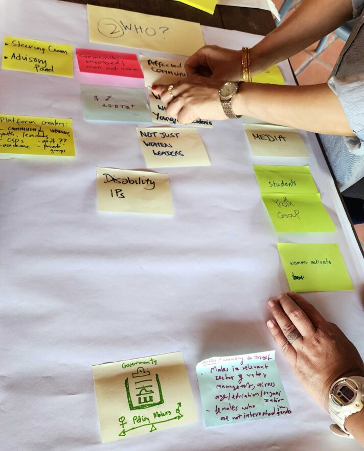 The ambitious agenda of the two-day workshop was co-developed by members of the Steering Committee with the support of a facilitator. Steering Committee members were involved in developing and leading sessions on visioning, understanding various platforms, developing platform governance, and sustainability. The committee conducted a gender analysis to support the clarification around broader transformational objectives and to identify areas of potential backlash and tension around the challenges of supporting women in water governance.